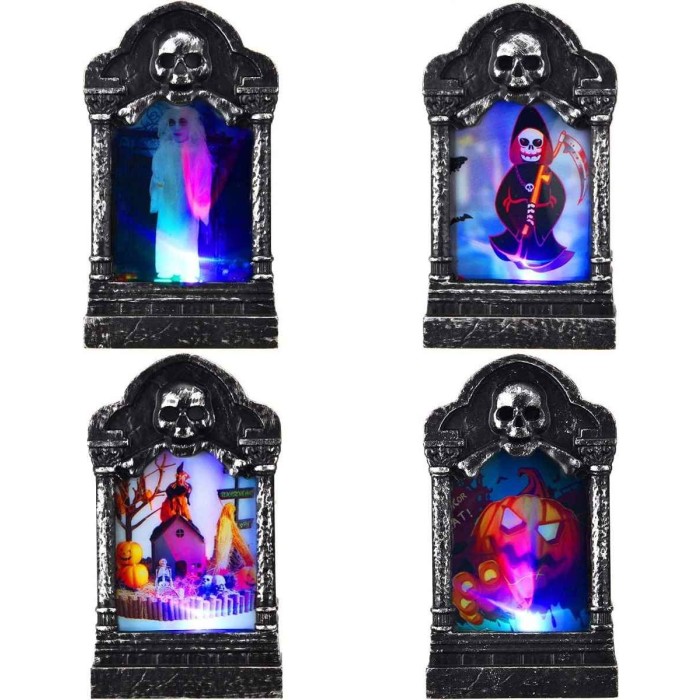 - Varios estilos: el paquete viene con 4 piezas de lápidas LED en 4 estilos diferentes, incluyendo el estilo de fantasma, estilo de bruja, estilo de calabaza; Y cada estilo está en línea con los elementos de Halloween y adecuado para la decoración de Halloween.