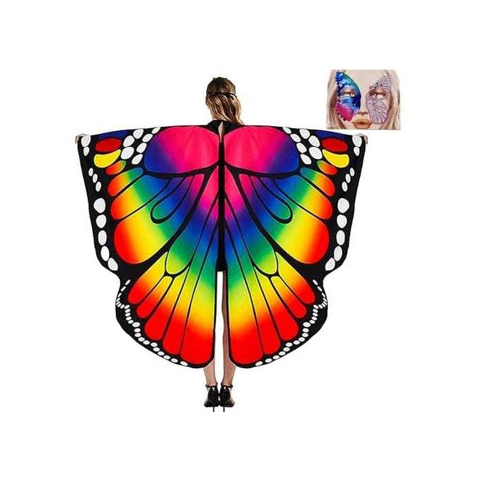 【ALAS DE MARIPOSA+TATUAJE PEGATINA MARIPOSA 】En este pack contiene 1 capa de ala de mariposa de diseño multicolor+ 1 tatuaje por un lado de cara y pegatina de sticker de mariposa por la otra.