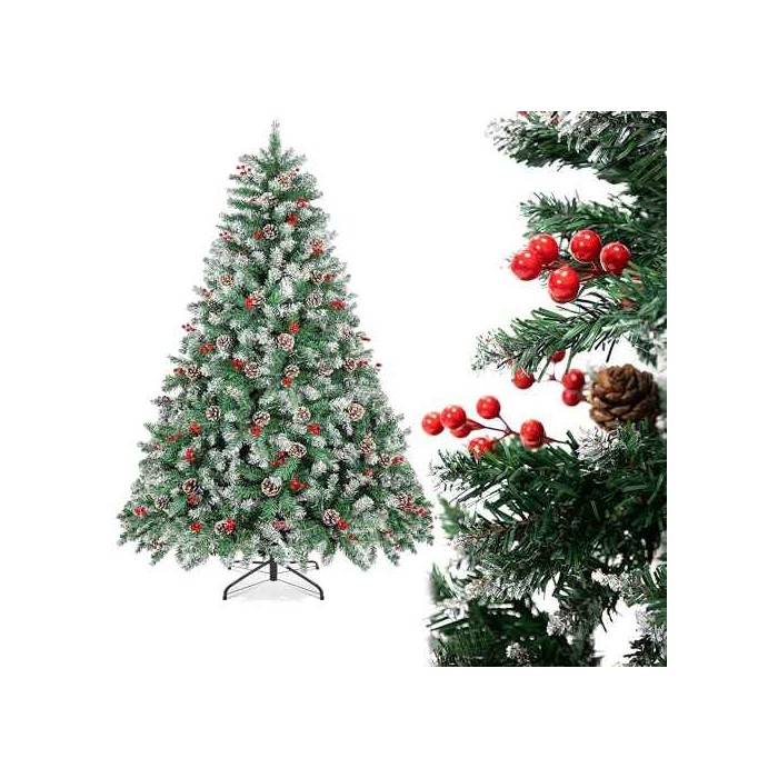 【ARBOL NAVIDAD APARIENCIA NATURAL Y REALISTA】Recibira 1 arbol+ 1 pack de piñas y frutos secos para decorrar el arbol.Las puntas de las ramas parcialmente cubiertas de nieve te sumergen en el espíritu navideño, y las piñas reales y los frutos rojos agregan un toque rústico. Es un árbol de Navidad visualmente atractivo que atrae la admiración de sus invitados.