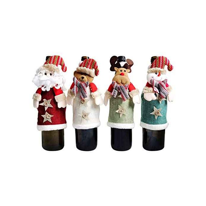 DISEÑO DE NAVIDAD - Estos vestidos de botellas de vino están diseñados con elementos navideños clásicos, perfectos para la decoración navideña y alegrar tu Navidad.