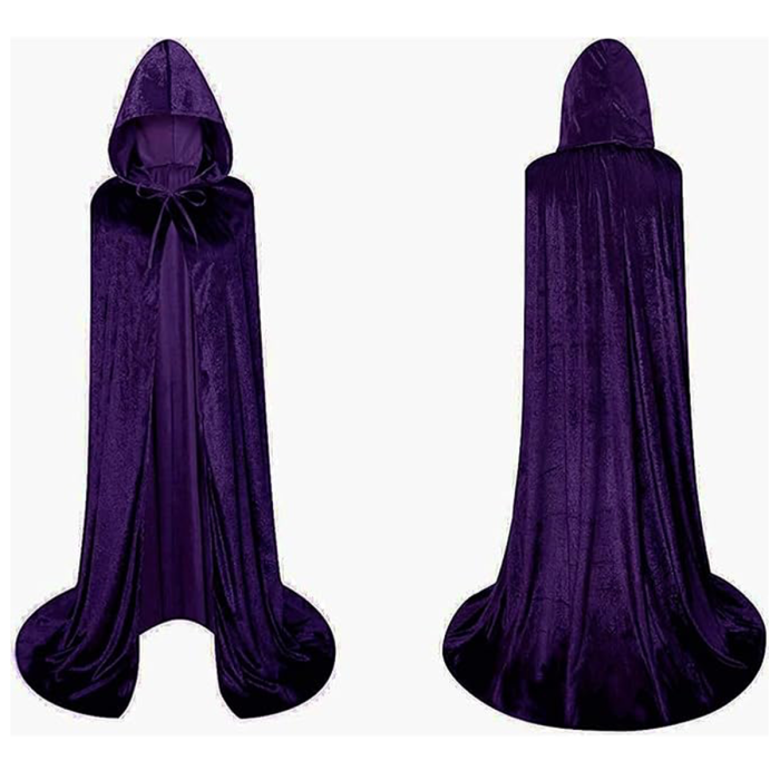 Fabricada en terciopelo suave, esta capa es ideal para cualquier disfraz de bruja, hechicero, vampiro o incluso Caperucita Roja. Su capucha amplia y cierre con lazo al cuello hacen que se ajuste cómodamente a cualquier figura, añadiendo un toque misterioso y elegante.