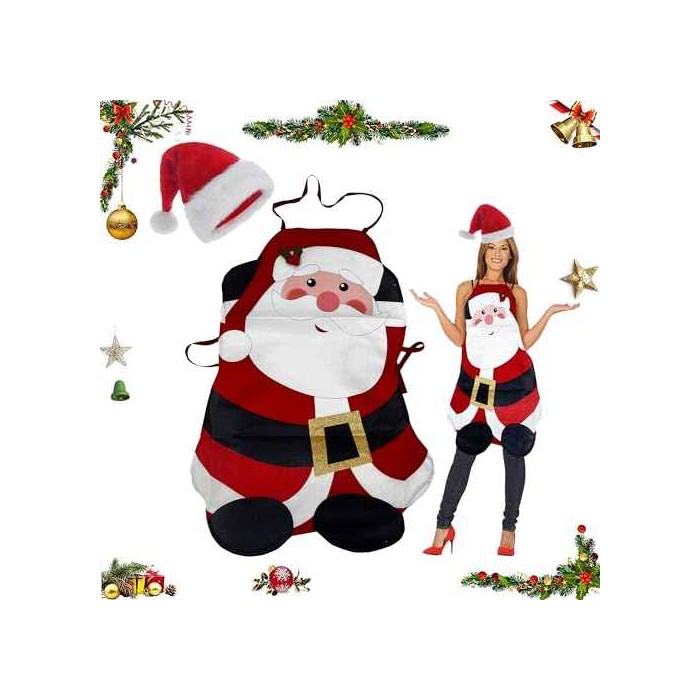 【DELANTAL COCINA NAVIDEÑO Y GORRO PAPANOEL】Usted recibira 1 delantal navidad + 1 gorrro papanoel para complementar el look navideño