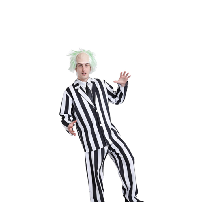 Transforma tu apariencia con nuestro Disfraz de Beetlejuice para Hombre, inspirado en el emblemático personaje de las películas de terror y comedia dirigidas por Tim Burton. Este conjunto incluye: