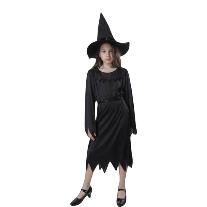 Disfraz Brujita Infantil – Vestido Largo Negro con Sombrero de Pico