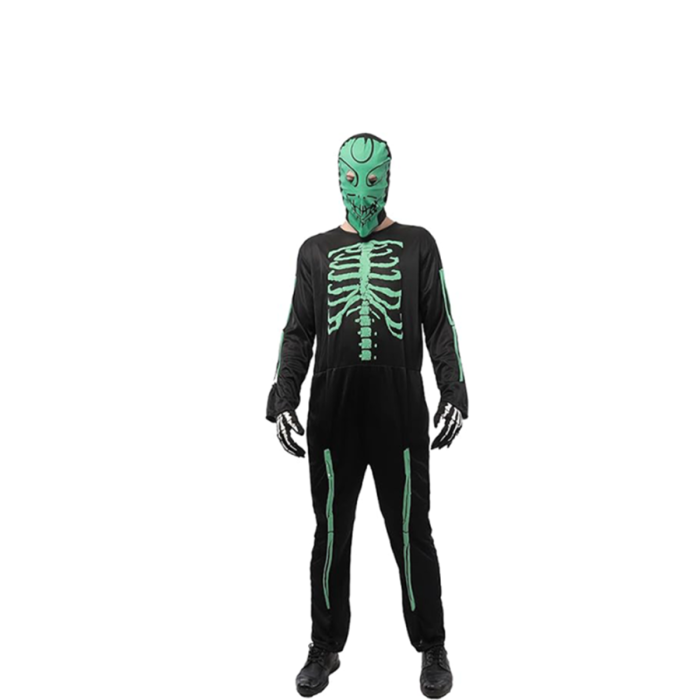 ¡Haz que todos se queden sin aliento con este disfraz de esqueleto verde, diseñado para quienes buscan un toque único y aterrador en sus fiestas de Halloween! Con un estilo luminoso y espectacular, este disfraz te convertirá en el esqueleto más sorprendente y original de la noche. Perfecto para aquellos que quieren destacarse con un look espeluznante pero moderno.