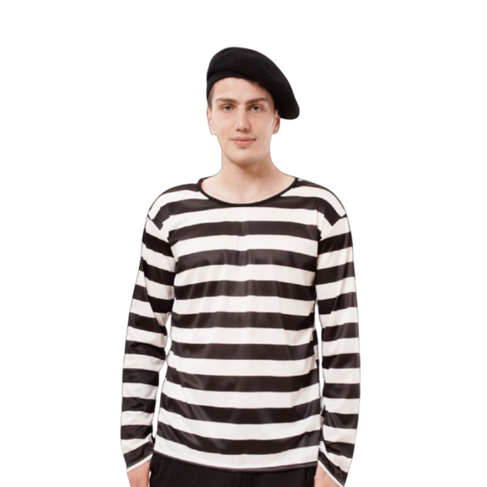 Incluye: Camiseta a rayas y boina negra.