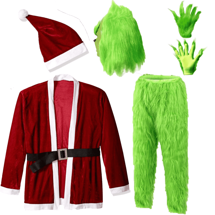 Disfraz Grinch, traje de monstruo verde, disfraz papa noel para Hombre Adulto
