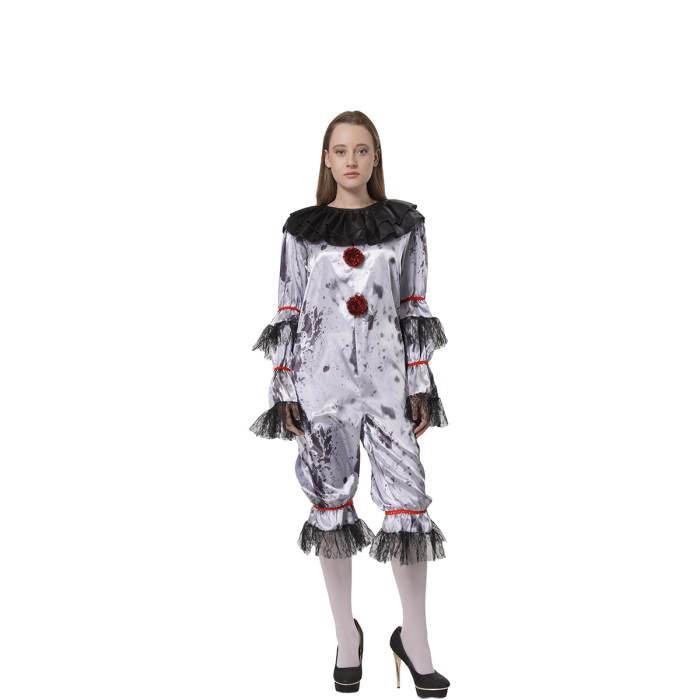 Un disfraz cómodo, impactante y fiel al estilo circo del terror, ideal para mujeres que buscan marcar la diferencia con un look aterrador… ¡pero con mucho carácter!