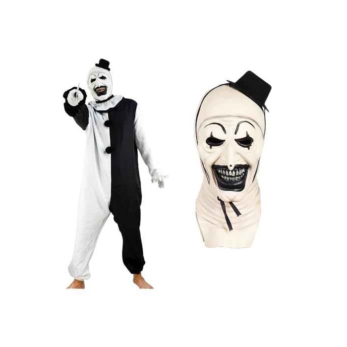 【MASCARA TERRIFIER UNISEX】Usted recibira 1 mascara terrifier, no incluye disfraz.La mascara de terrifier es para adulto y está abierto por detrás, hecho de látex de alta calidad que lleva al payaso asesino Terrifier en la vida real. En nuestra tienda tambien esta disponible el disfarz de terrifier
