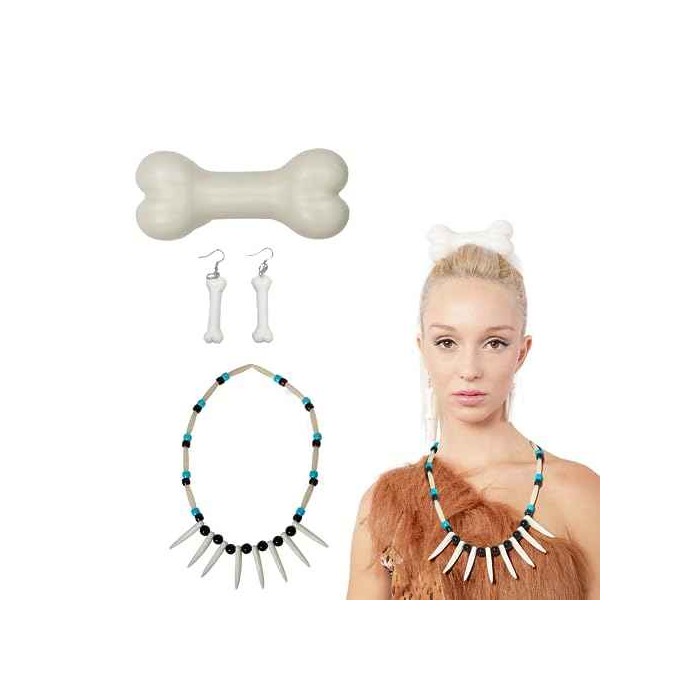 Juego de Joyas de Hueso para Disfraz de Caníbal Primitivo, Accesorio Collar Diadema Pendientes Hueso para Disfraz CavernicolaTalla única (MODELO C)