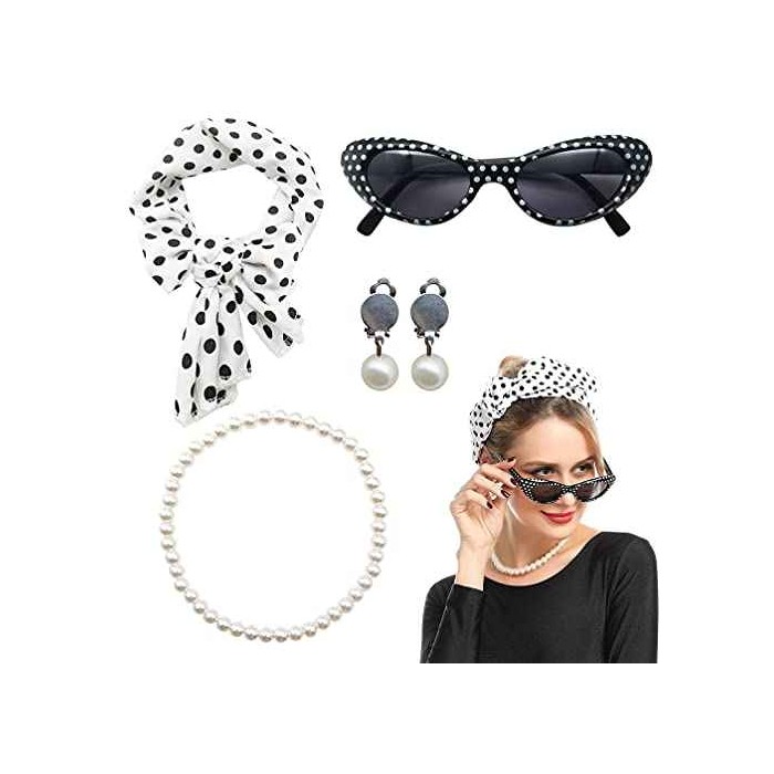 Lady Costume 50s Accesorios de disfraz Set 4 de Gafas Diadema Pendientes y Collar para Mujer