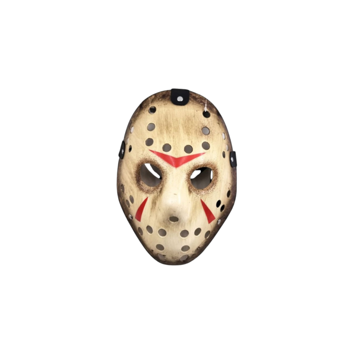 Fabricada en plástico rígido y duradero, cuenta con una goma elástica trasera que permite un ajuste seguro y cómodo para cualquier tamaño de rostro adulto. Sus detalles realistas de color blanco envejecido, orificios de ventilación y el inconfundible estilo de Jason la convierten en una pieza indispensable para impactar en cualquier fiesta.