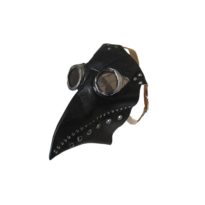 Máscara de peste negra para adulto inspirada en el clásico diseño del médico de la plaga. Incluye el característico pico largo y detalles metálicos que le dan un acabado realista y misterioso. Fabricada en material sintético resistente y flexible con color negro y remaches decorativos. Las lentes en los ojos aportan un toque auténtico y permiten una visibilidad adecuada. Su diseño ergonómico y ventilado garantiza comodidad durante el uso. Ideal para Halloween, fiestas temáticas, cosplay o representaciones teatrales. Material PVC flexible con detalles metálicos. Color negro con acabados plateados. Talla adulto ajustable con correa elástica. Perfecta para Halloween, cosplay, fiestas de disfraces, teatro y sesiones fotográficas.