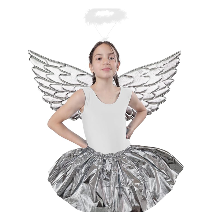 Perfecto para Halloween, fiestas de disfraces, carnaval o cualquier evento temático, este pack incluye todo lo necesario para un look celestial. Con un acabado metalizado brillante, tu hija se sentirá como un verdadero ser celestial.