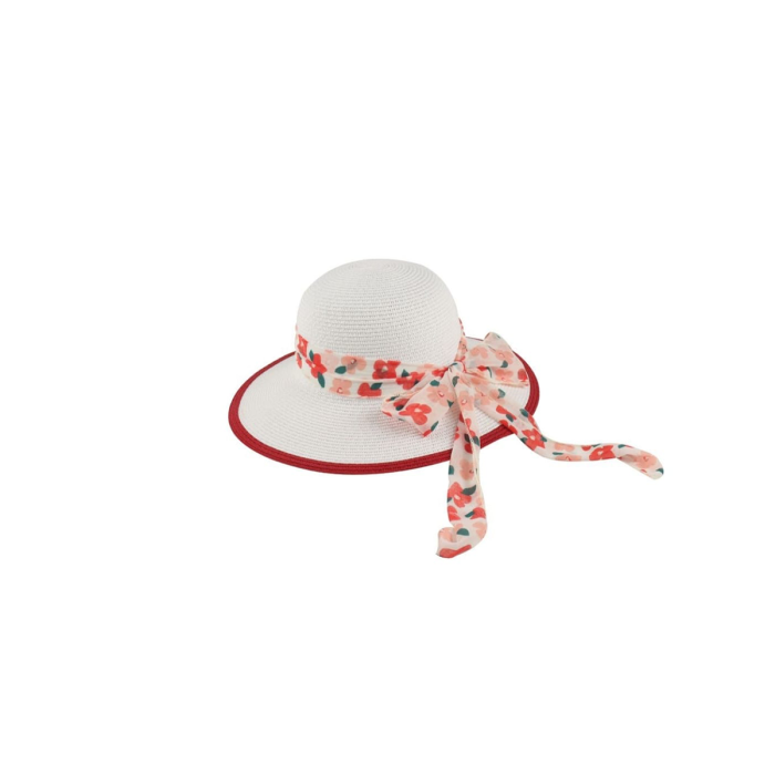Pamela infantil de verano con ala ancha y lazo decorativo floral