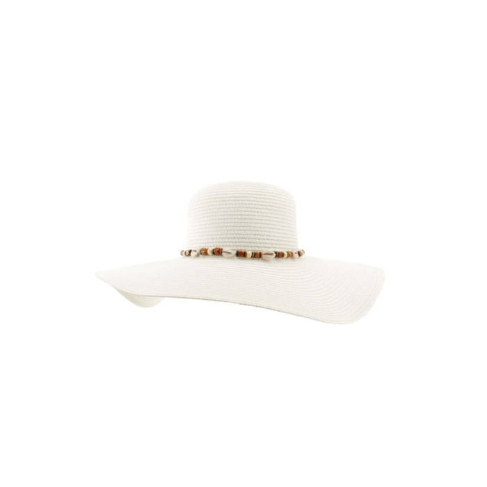 En la base de la copa, un detalle decorativo compuesto por cuentas naturales y pequeñas conchas aporta un toque boho-chic que realza su estilo. Ideal para escapadas de verano, paseos junto al mar o eventos al aire libre con un look femenino y relajado.