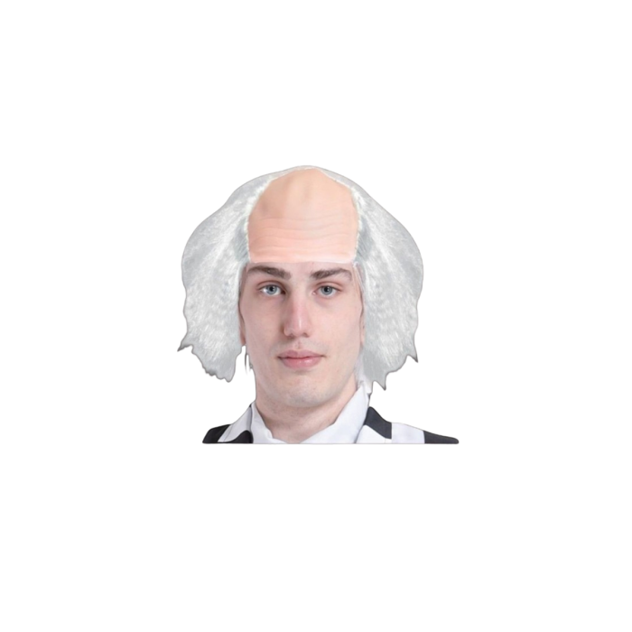 Peluca con calva y pelo blanco para adulto inspirada en el estilo clásico de Beetlejuice o en personajes de ancianos. Ideal como accesorio para disfraces de Halloween, fiestas temáticas, teatro o eventos de comedia. Fabricada en fibra sintética ligera y resistente, combina una calva flexible de látex con cabello blanco desordenado y de aspecto envejecido. Su interior elástico permite un ajuste cómodo y seguro, adaptable a diferentes medidas. Perfecta para completar disfraces cómicos o de terror con un toque realista. Material fibra sintética de alta calidad. Talla única para adulto.