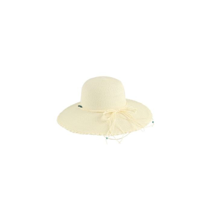 Sombrero de verano con cinta de cordón y cuentas – Elegancia natural para mujer