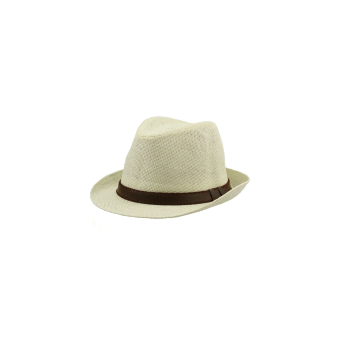Este sombrero tipo fedora está elaborado totalmente en papel natural tratado, un material ligero, transpirable y respetuoso con el medio ambiente.