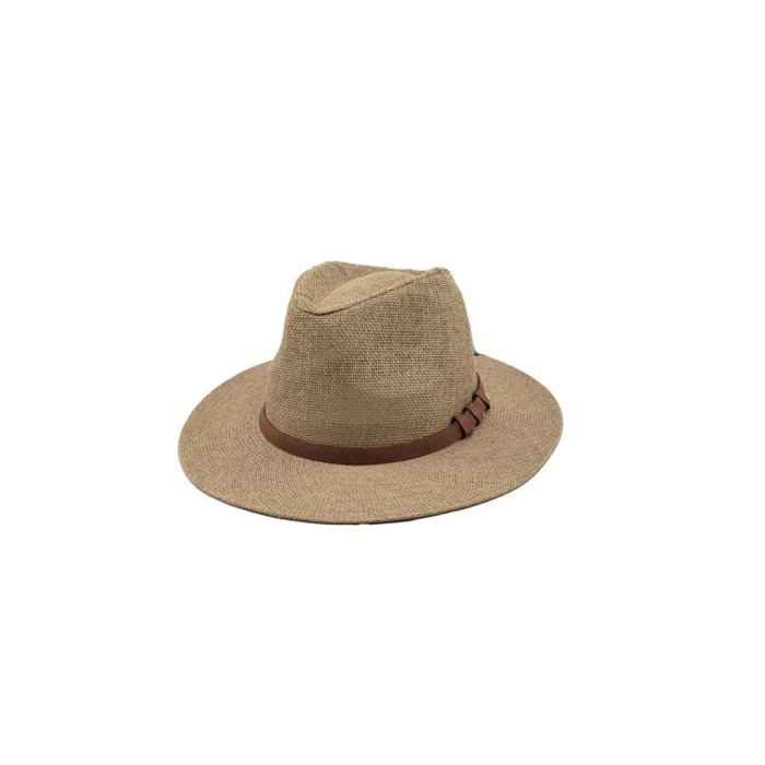 Confeccionado en fibra trenzada ligera y transpirable, su estructura clásica se combina con un adorno único que lo convierte en el protagonista de cualquier outfit.